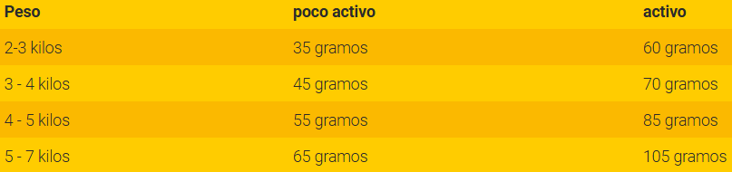 La cantidad de alimento recomendada se aplica por animal y día.